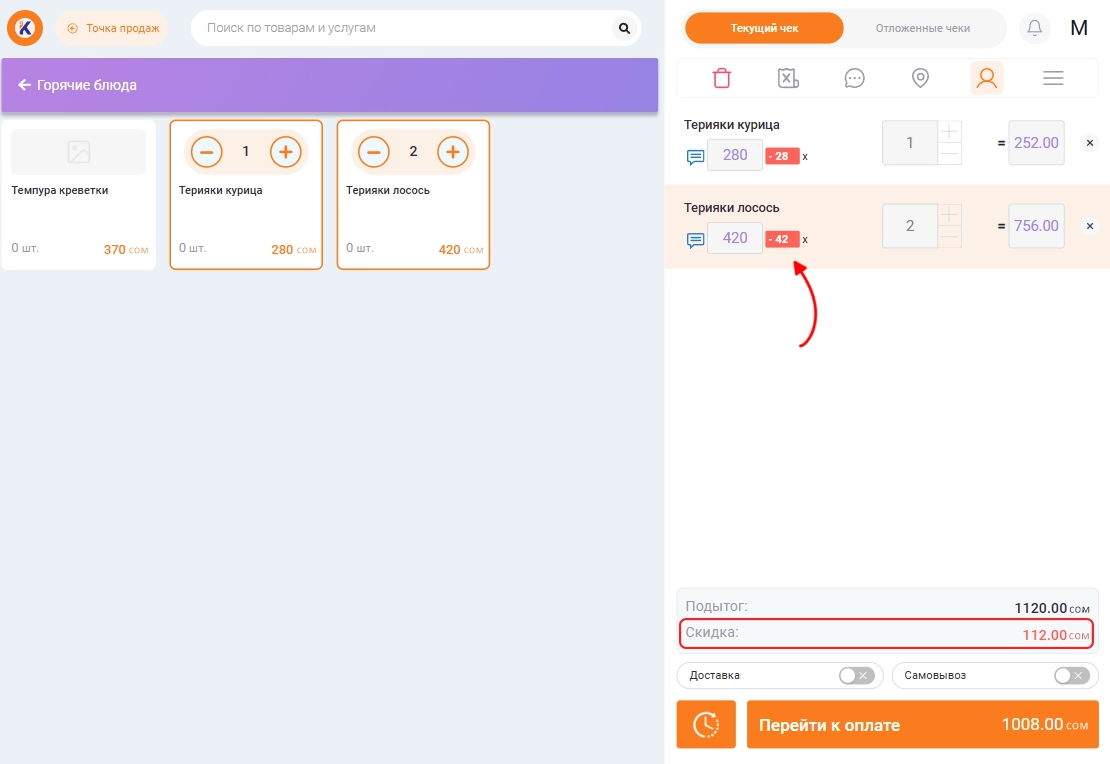 Готово! Скидка применяется ко всему заказу сразу. Осуществить продажу можно в штатном режиме.