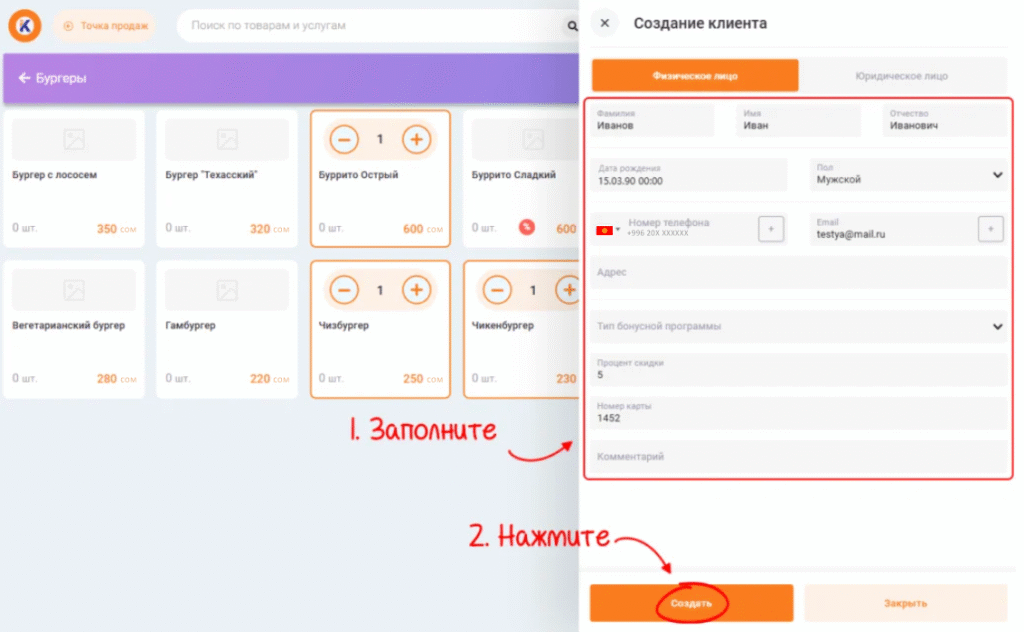 И заполните все данные клиента в открывшемся окне, после чего нажмите на «Создать».
