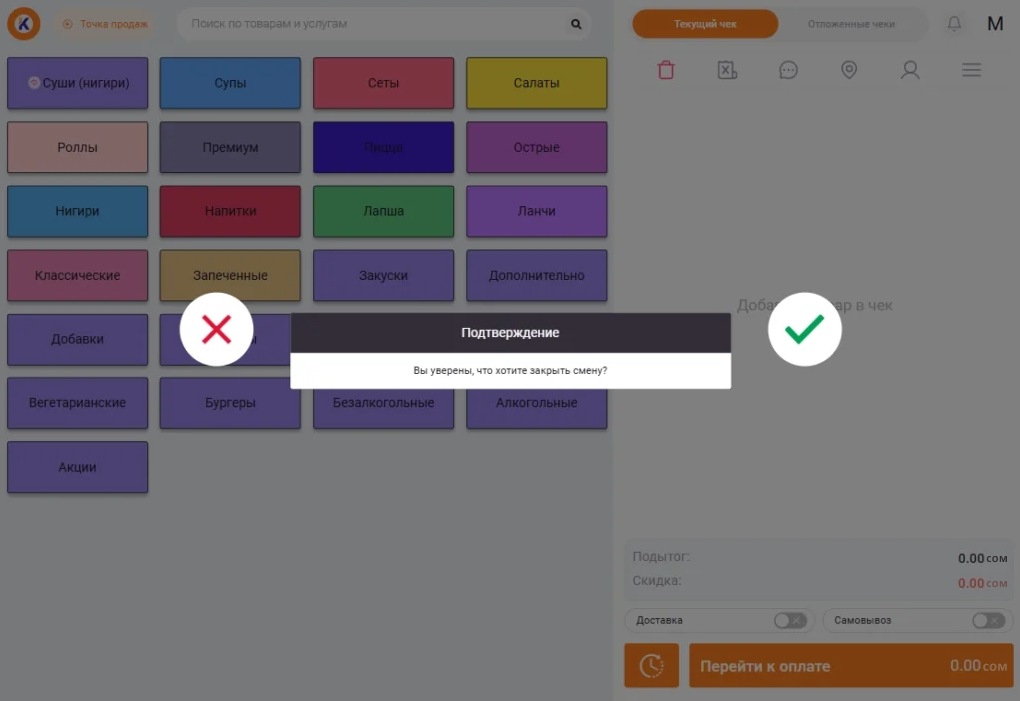 Откройте интерфейс кассира